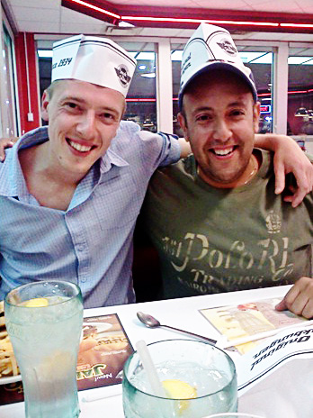 Roma and Jose enjoying an American meal at Steak 'n' Shake.