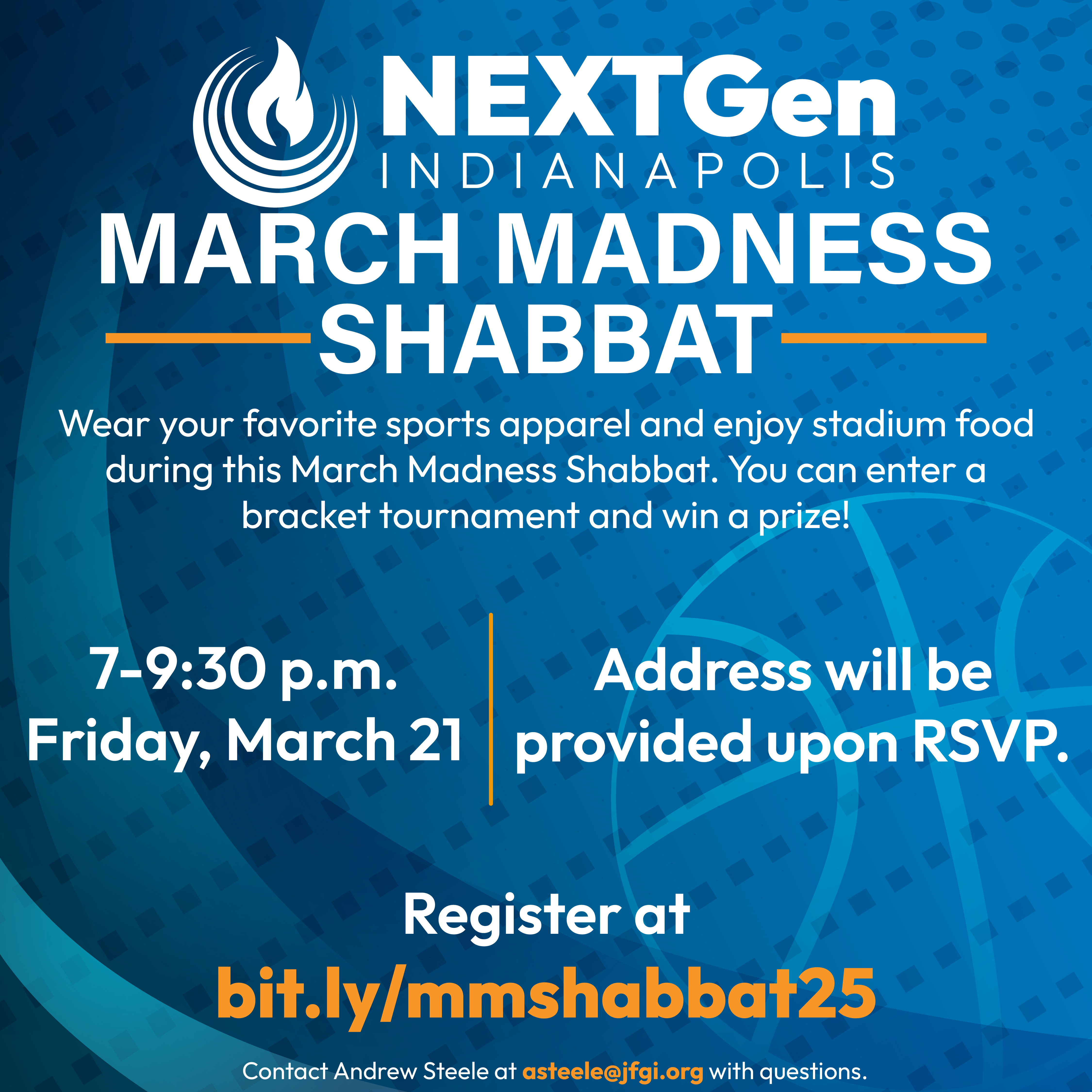 Wear your favorite sports apparel and enjoy stadium food during this March Madness Shabbat. You can enter a bracket tournament and win a prize!