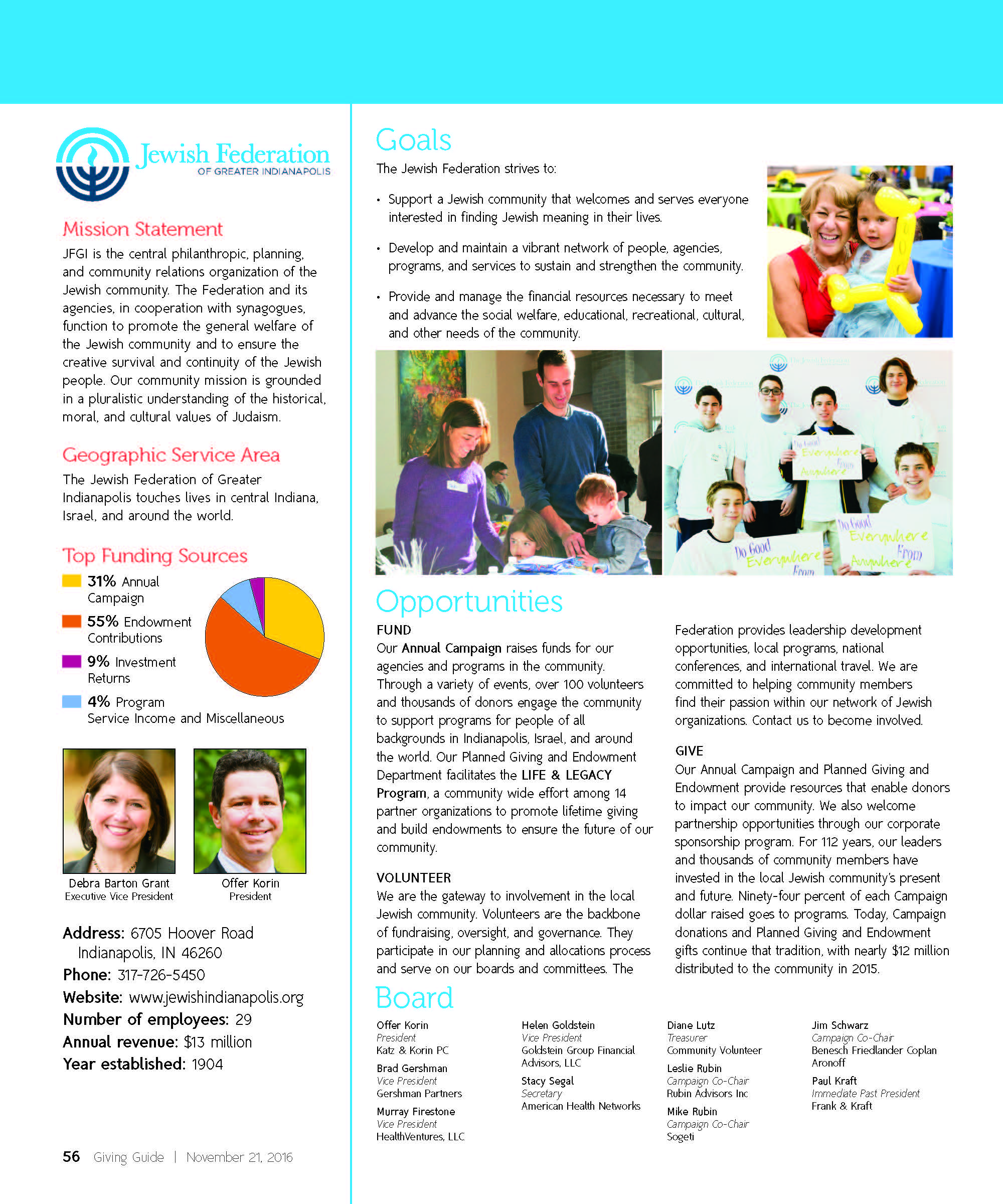 The Jewish Federation of Greater Indianapolis is featured in the 2016 IBJ Giving Guide.