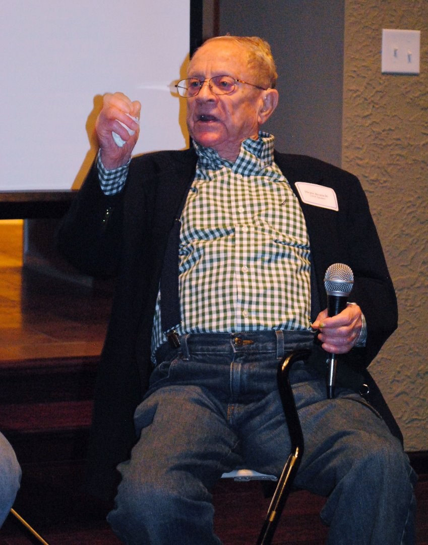 Meyer was nearly killed many times. Once, he was carrying a bucket of water and a bullet from a Nazi shoulder went through the bucket, missing him by inches. Another time, he was under siege by several Nazi soldiers and recalls looking up to see a rain of pine needles sprinkling down on him as the bullets pierced through the forest vegetation. When asked if he feels lucky that he survived, Meyer responds, “God took me by the hand and led me around all the time.”