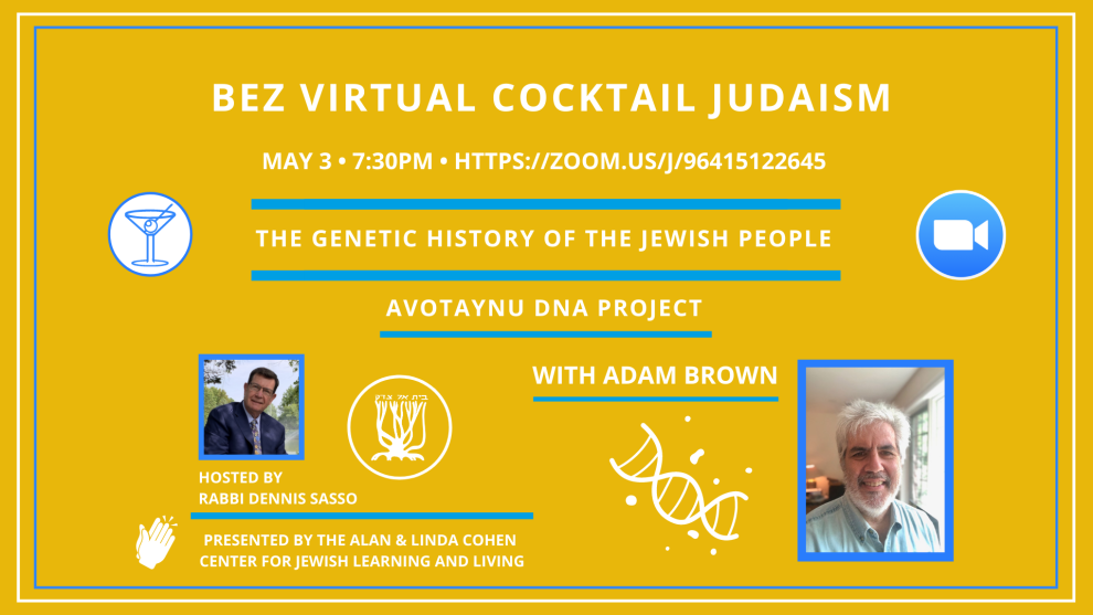 Rabbi Dennis Sasso hosts a revealing conversation about the genetic history of the Jewish people with New Jersey community leader and genetic genealogist Adam Brown. Learn more about Adam’s role with Avotaynu DNA, his civic work in the Jewish community, and the scientific discoveries he’s made while researching the genetic history of Jewish people. Find out how you might learn more about your own genetic and genealogical history. For questions contact Jacqui Goldstein at jgoldstein@bez613.org.