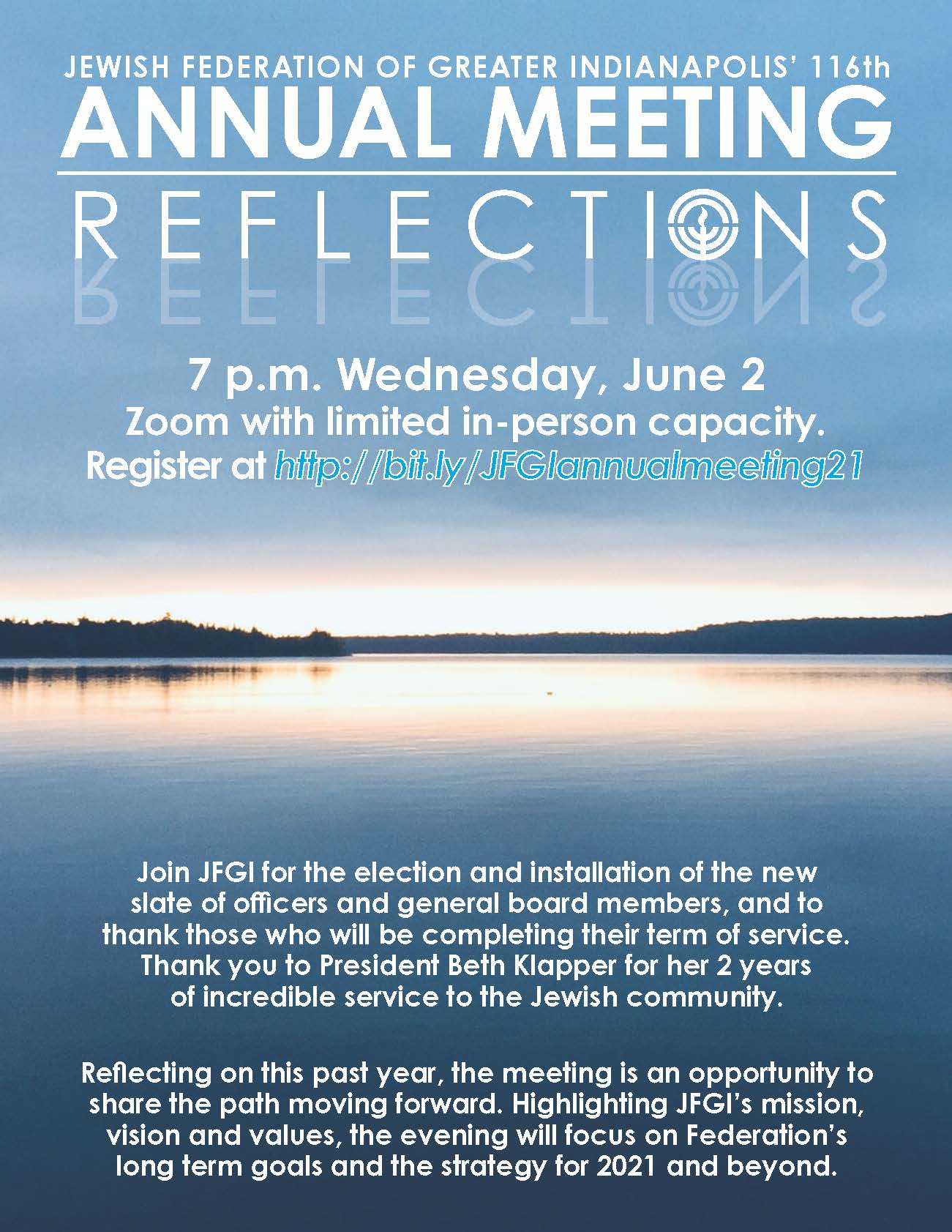 Reflecting on this past year, the meeting is an opportunity to share the path moving forward. Highlighting JFGI’s mission, vision and values, the evening will focus on Federation’s long term goals and the strategy for 2021 and beyond.