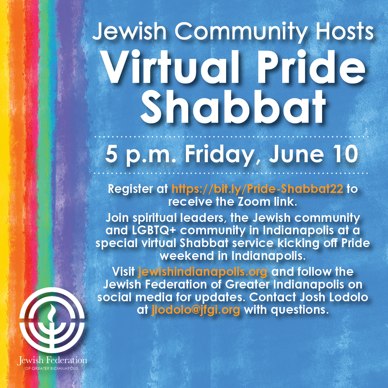 Join spiritual leaders, the Jewish community and LGBTQ+ community in Indianapolis at a special virtual Shabbat service kicking off Pride weekend in Indianapolis.