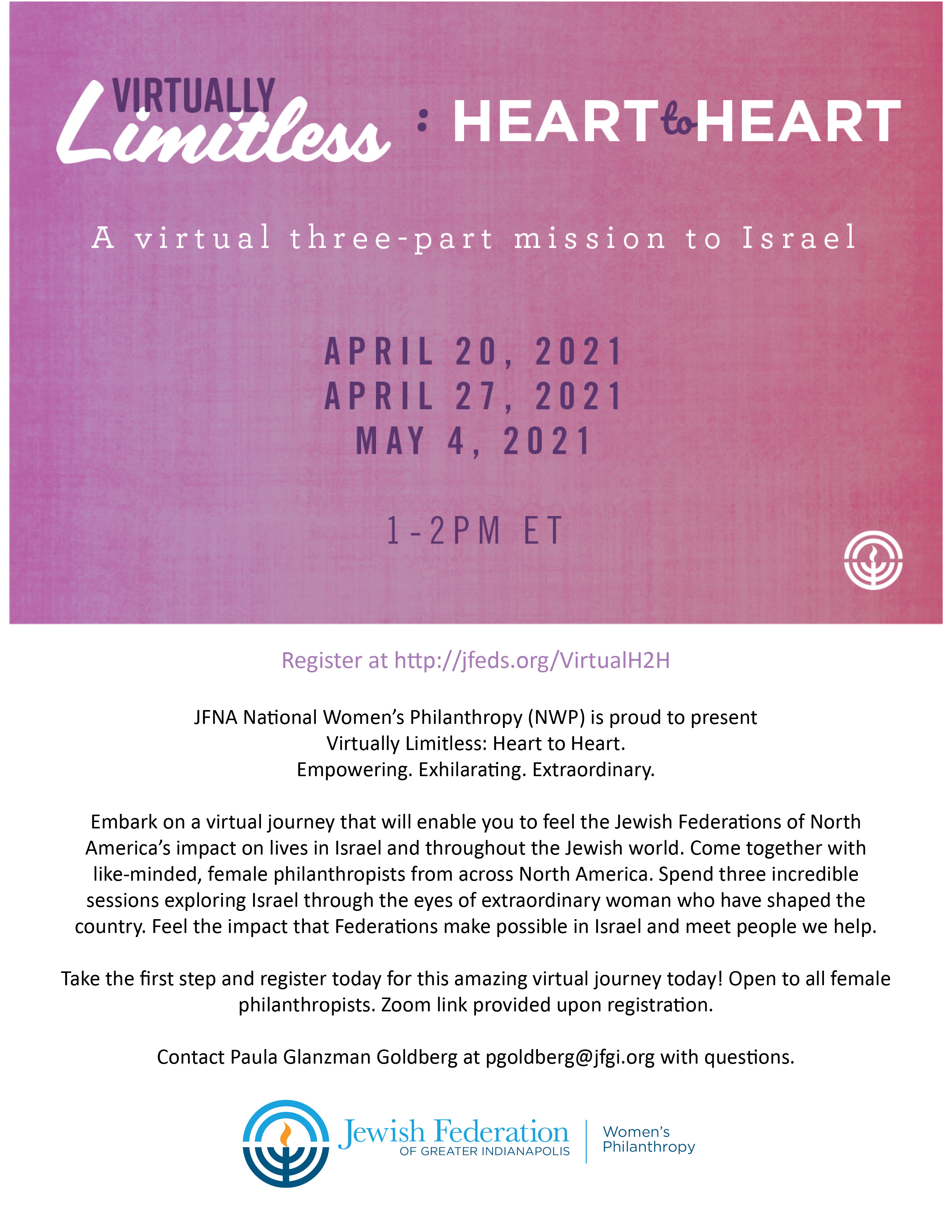 JFNA National Women’s Philanthropy (NWP) is proud to present Virtually Limitless: Heart to Heart.